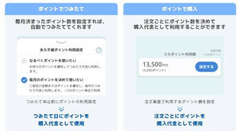 ネット証券の株式会社スマートプラスの口座内で、永久不滅ポイントを金額換算して投資資金にできるサービスです。投資初心者でも投資先に迷わなくていいよう、厳選された2種類の投資信託と個別銘柄の単元未満株を少しずつ買っていく「株つみたて」があります。つみたてNISA口座内での取引にすることも可能です。