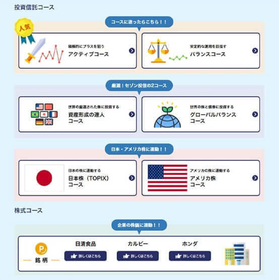 ここからは、ポイントサービス別に、どんな投資方法があるのかをご紹介します。