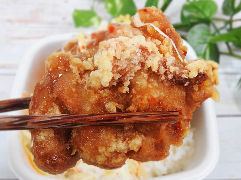 お持ち帰りで時間が経ってしまったせいか、から揚げのサクサク感がなくなってしまいましたが、味へのネガティブな影響はなかったと思います。
