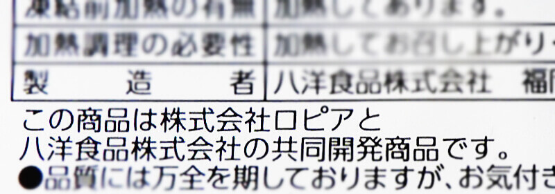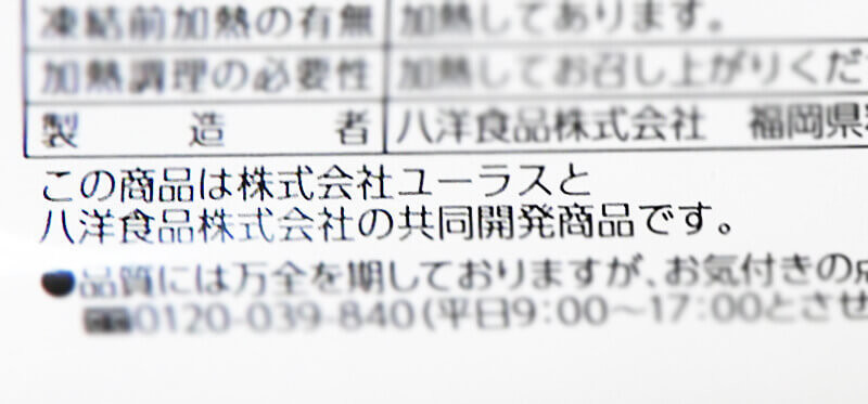 後からパッケージを確認すると、株式会社ユーラスと八洋食品の共同開発商品でした。株式会社ユーラスは、国内でのプライベートブラント(PB)商品の開発を主要な事業としている企業です。