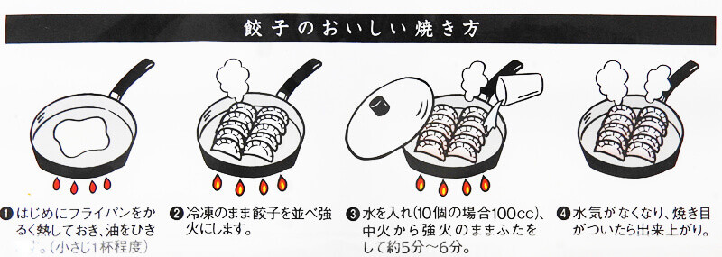 餃子の個数や調理器具によって焼き時間は前後しますが、私はパッケージに書かれている通りに餃子を焼いたところ、満足の行く仕上がりになりました。