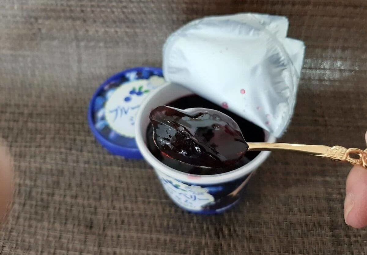 色が濃いので見えにくいですが、丸ごとブルーベリーが入っています。