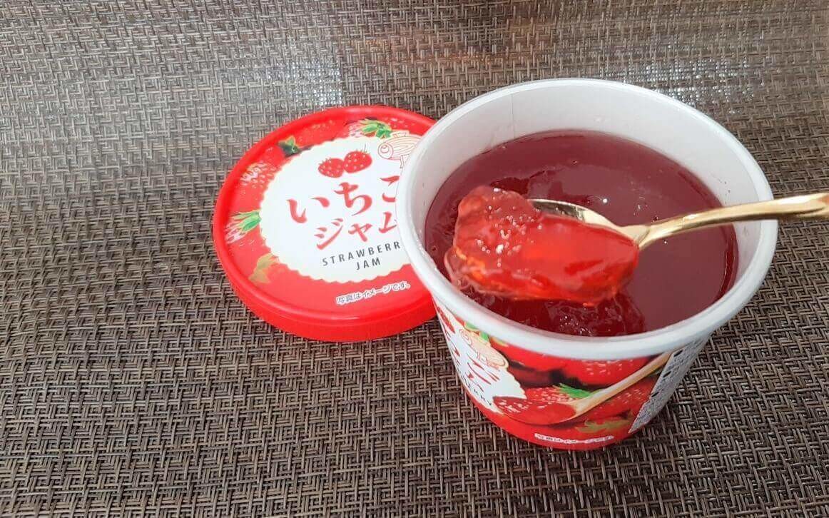 いちごの果肉はどれくらい使われているかはわかりませんが、ジャムの中にいちごの種も見えるので少なからず入っているようです。