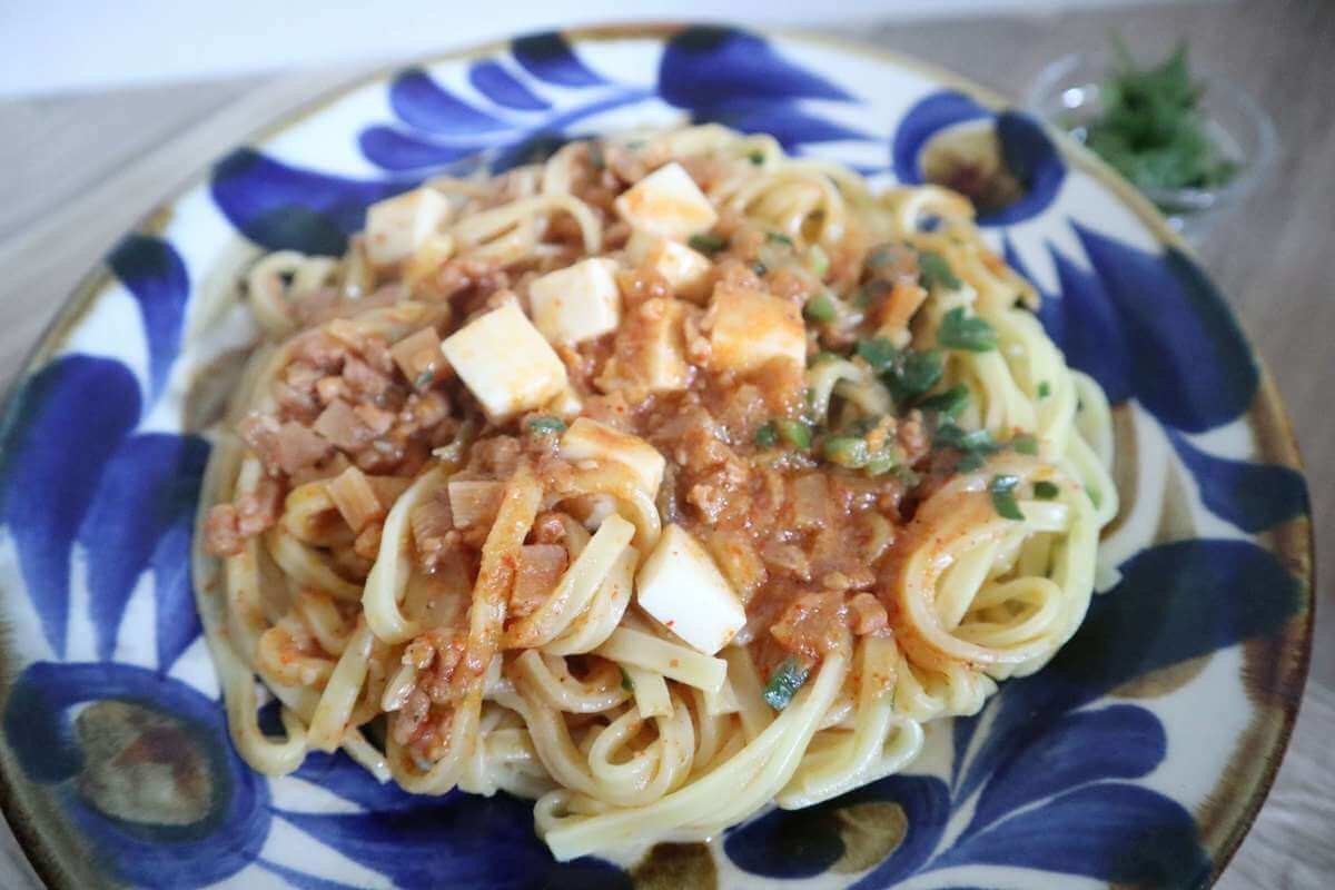 花椒入り辣油で辛さの調節ができます。