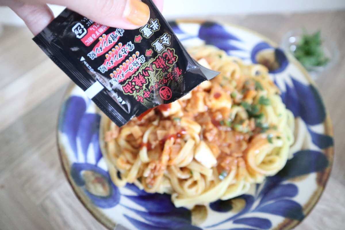 花椒入りラー油を外して、電子レンジで加熱すればすぐ食べられます。