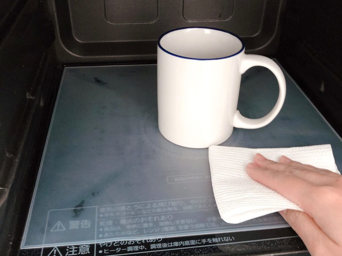 使用頻度が高く、きれいを保ちたいけれど、なかなかお手入れの面倒な「電子レンジ」で使用します。