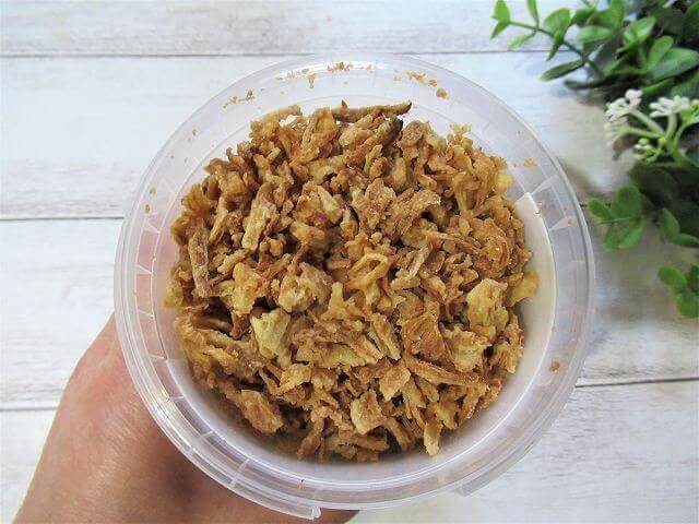 業務スーパーには1㎏入りのクリスピーフライドオニオンもありますが、私は個人的に150gの方が使い勝手がいいので、こちらをチョイスすることが多いです。