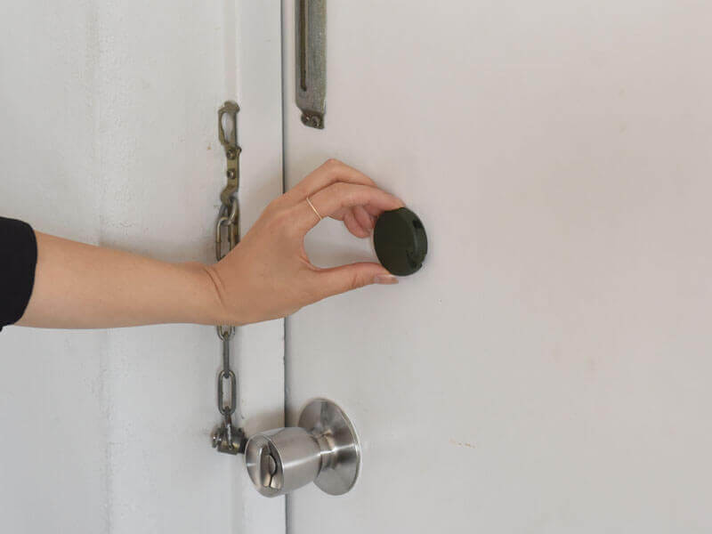 このダンボールカッターは磁石が埋め込まれた形状だから、磁石がつけられる場所にペタっと貼れて、置いておく定位置が作りやすく、 玄関ドアや冷蔵庫などに貼っておけるのがポイント。私は、玄関ドアを定位置にしています。