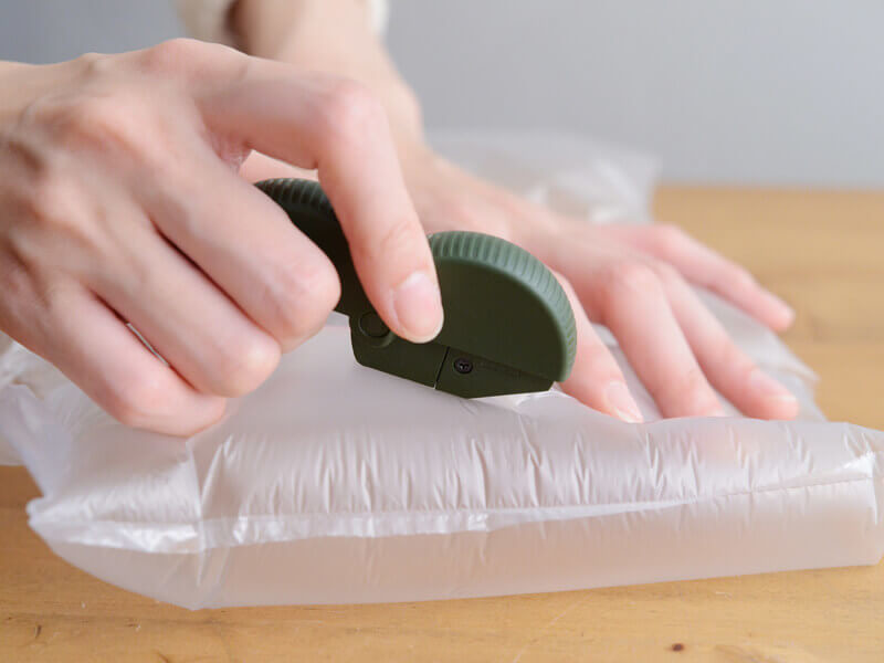 荷物の緩衝材として入っている事が多いエアピローは、そのまま捨てるとなるとかさばるので、空気を抜くのにハサミで一つ一つ切り込みを入れていたのですが、これもまた地味に面倒で……。