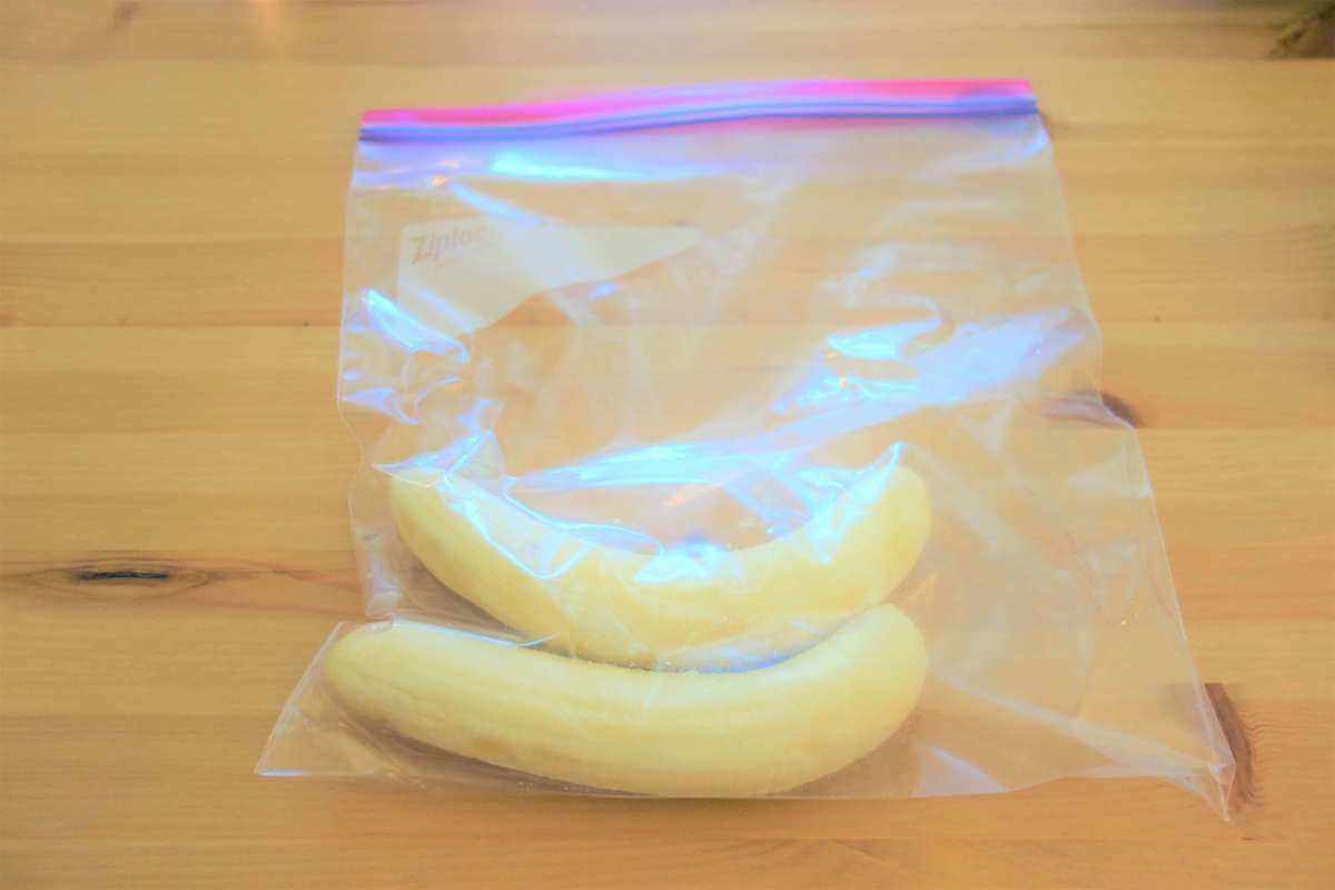 バナナアイス作り方①バナナを密閉式の保存袋に入れて手で潰す