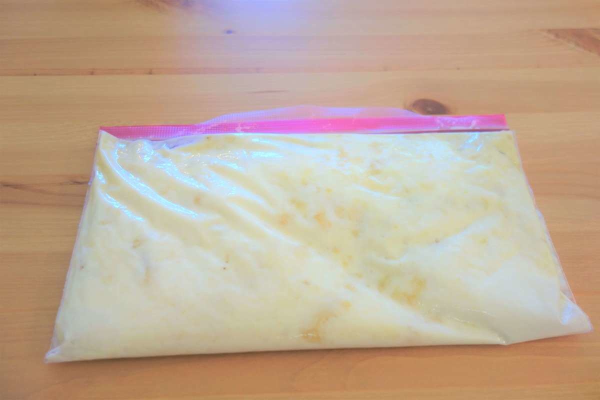 バナナアイス作り方③空気を抜いて冷凍室で冷やす