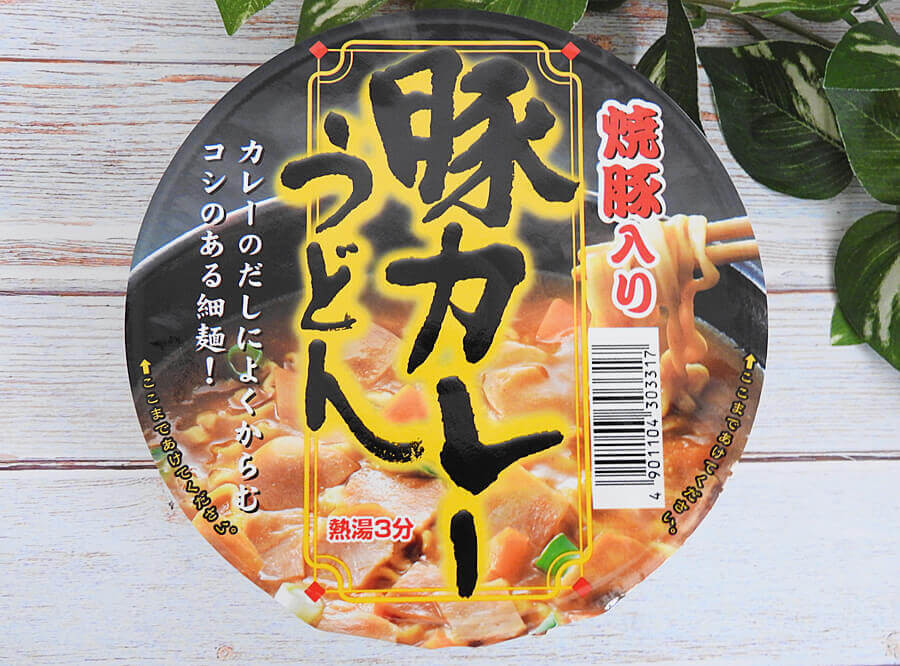 私は全く知りませんでしたが、ロングセラー商品「チャンポンめん」で有名な、イトメン株式会社が製造元の「豚カレーうどん」84円(税込)。焼き豚が入っているのだとか。