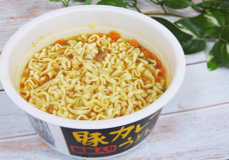 作り方は、一般的なカップ麺と同じです。熱湯で3分後……スパイシーな香りとともに完成しました。