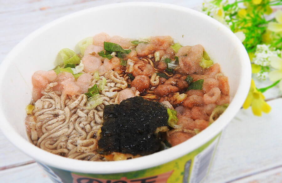 個人的には、そばつゆがストレートに楽しめて気に入りました。そばっぽいざらっとした舌触りも再現されてて、よくできています。
