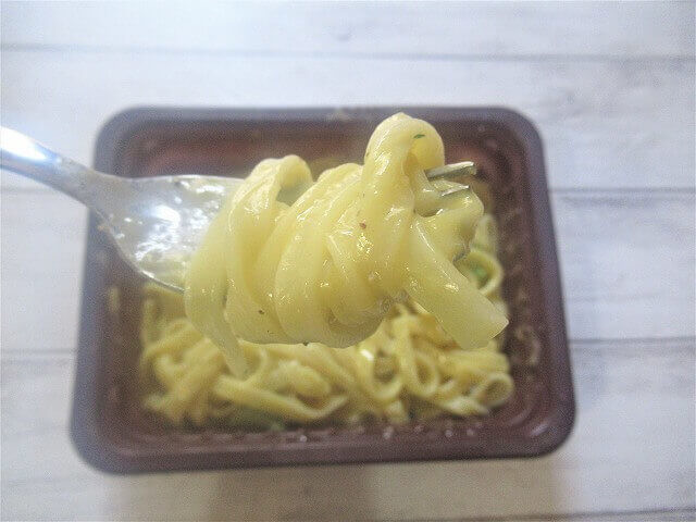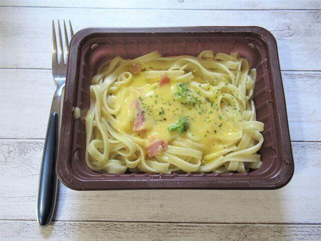 蓋を開けると、カルボナーラの香りがしっかりと漂ってきます。