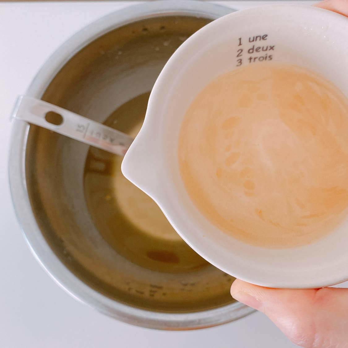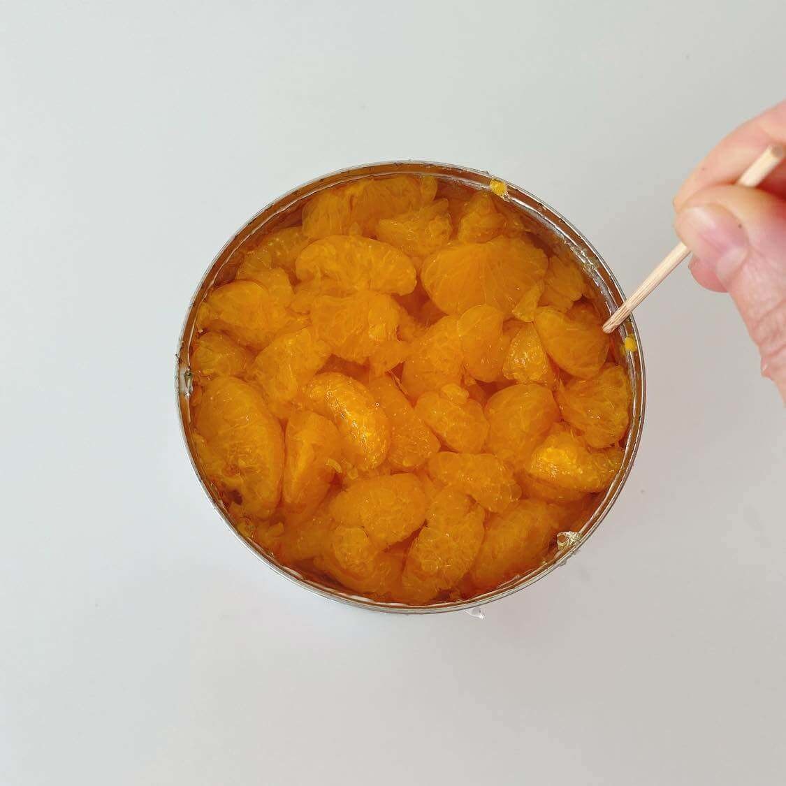 3、2を1のシロップに入れてよく混ぜて、みかんの入った缶にシロップを戻します。
