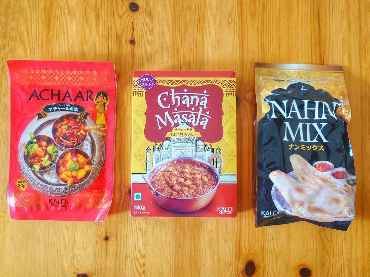 カルディには様々なレトルトカレーやカレーの素がありますが、カレーの付け合せやナンもあるんです。