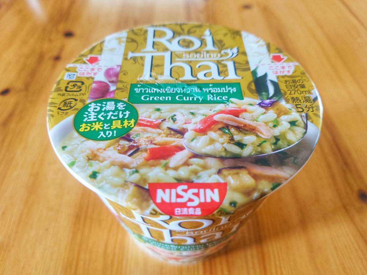 こちらはタイで人気のレトルトカレーのロイタイと日清がコラボし、カルディで販売しているカップグリーンカレーです。