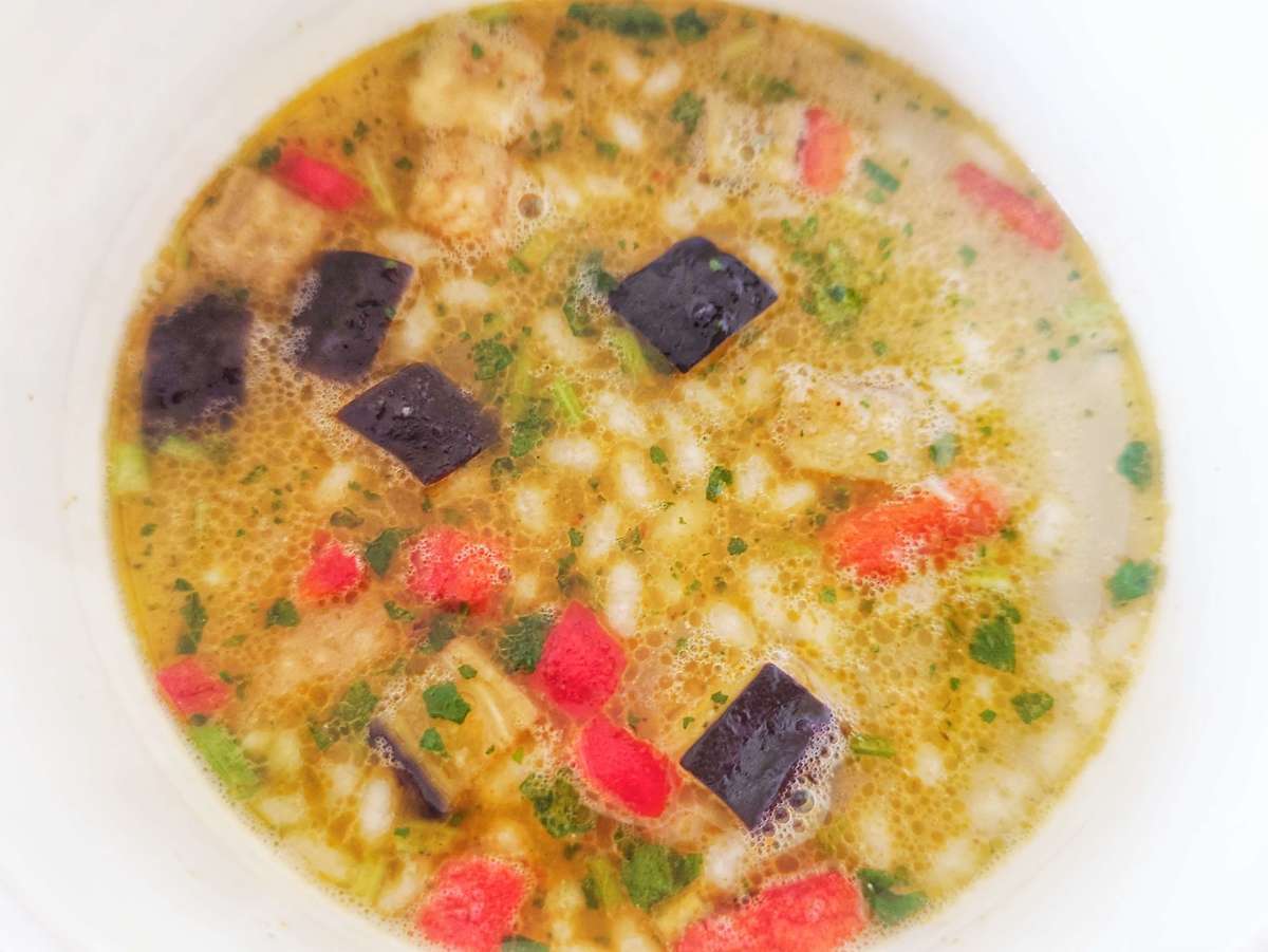 カップには辛さ5段階で4とあり、そこそこピリ辛感はありますが、ココナッツミルクのマイルドさもあり食べやすく、本格的なグリーンカレーを味わえます。