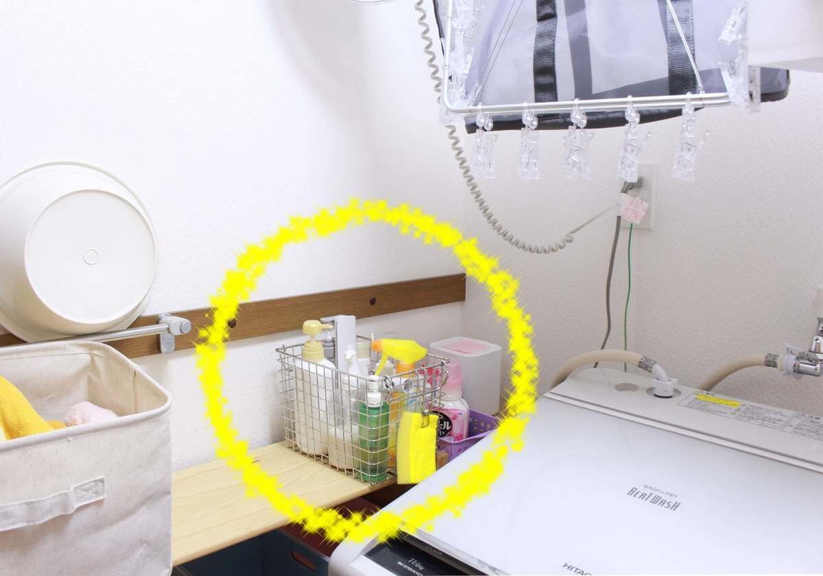 かわいそうなので、乾いたら洗濯機横の棚に片付けています。