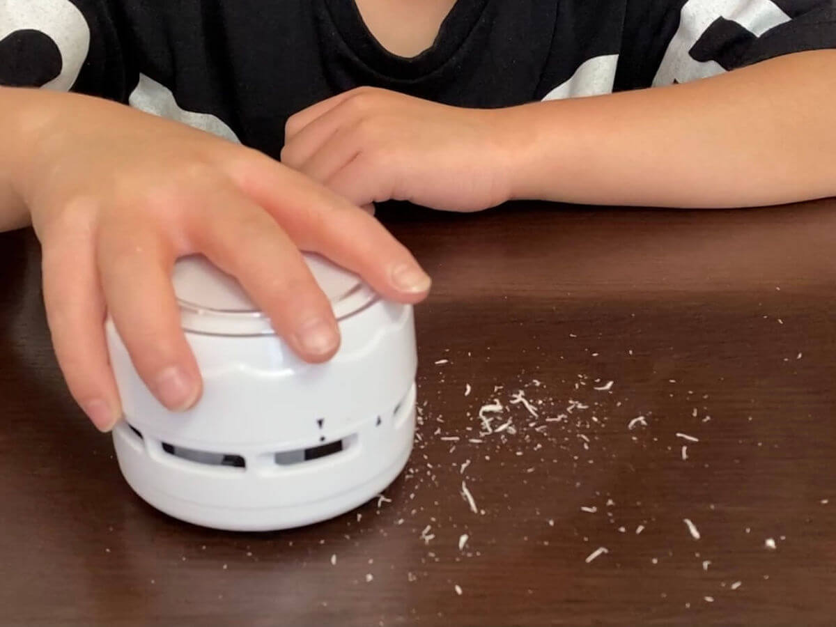 使い方も簡単なので、消しかす掃除は子ども達に丸投げしています(子どもが使用するさいは、保護者の目の届くところでお使いください)。ダイニングテーブルのリセット時間がグッと短縮されて、私のストレスも軽減されました♪