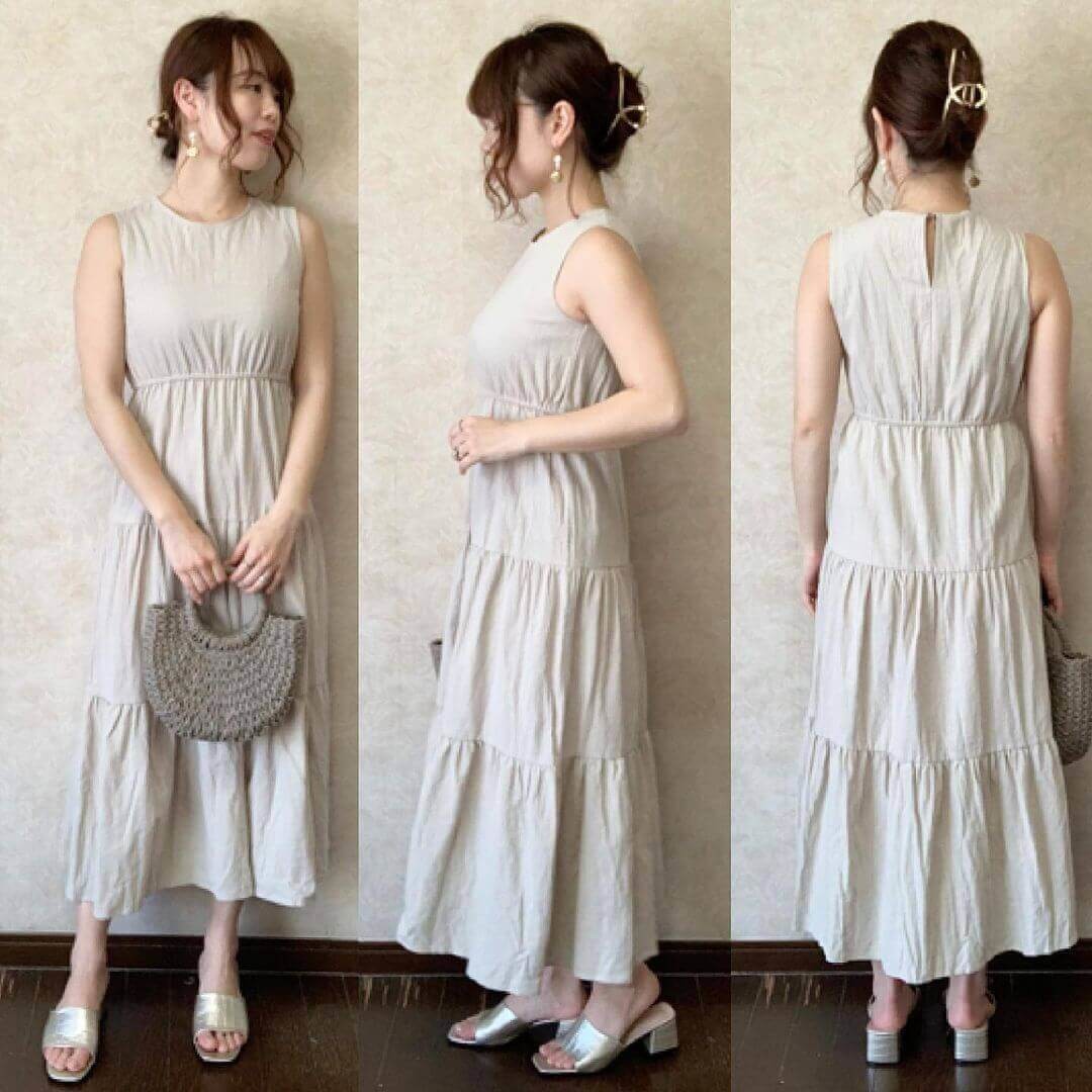 ナチュラルなクリーム色のワンピースは、暑い夏に清涼感をもたらしてくれそうです。