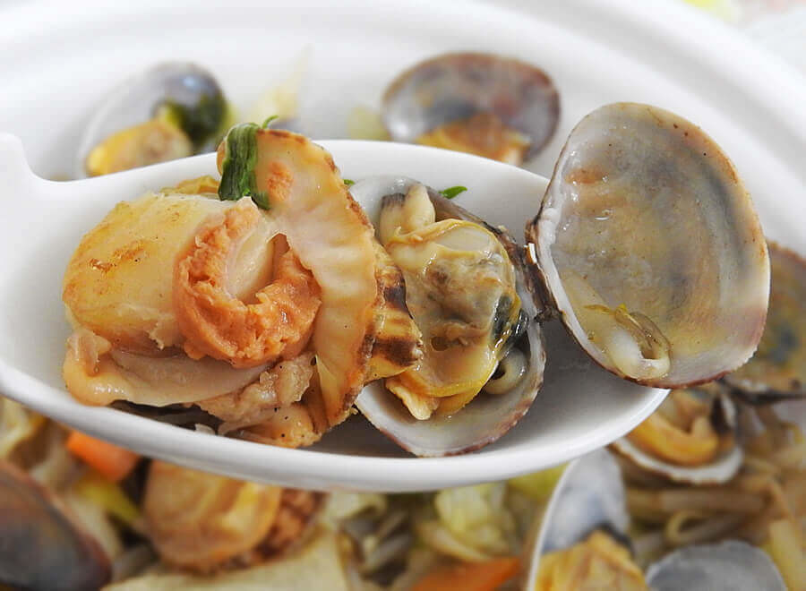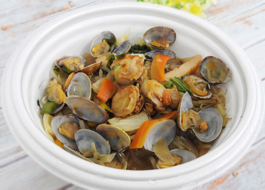 以前は、「あさり」と「あおさ」をメインとした「あさりちゃんぽん」でしたが、2021年は青森県の陸奥湾で獲れたほたてを追加。貝&貝とシーフード好きには、みのがせない一品ですね。6月下旬まで販売予定だそうです。