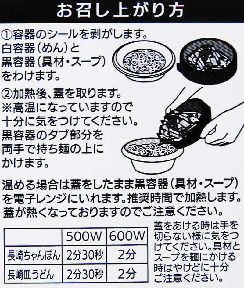 - ふたをしたまま、黒容器のみ電子レンジに入れて温める(500W:2分30秒、600W:2分)