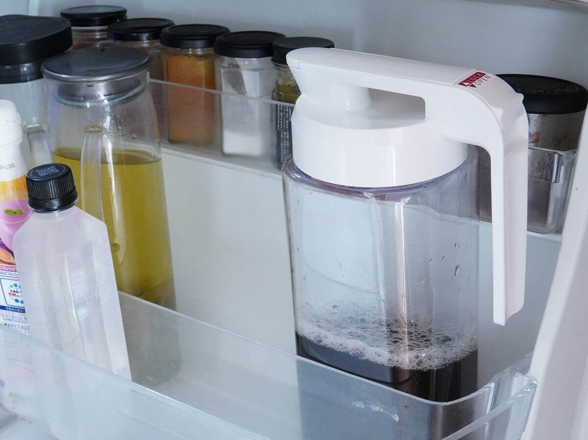 2.1Lと大容量ながら冷蔵庫のドアポケットにもスッキリ入る形状。