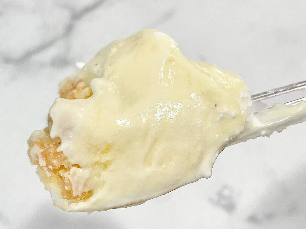 スプーンを入れるとふわふわなチーズホイップから、しゅわしゅわっと音が。