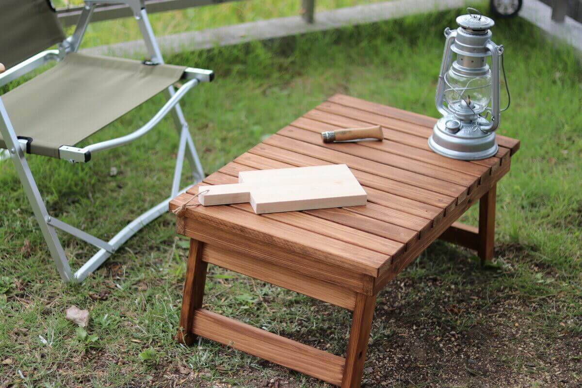 キャンプの必需品!木製折りたたみ「ローテーブル」