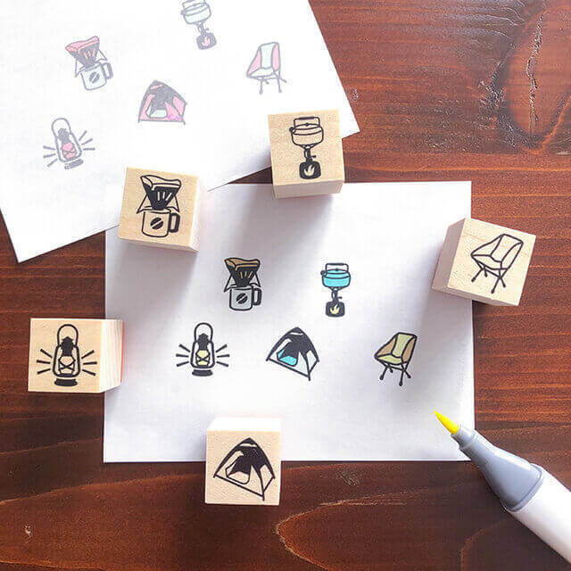 こちらのはんこはキャンプアイテムがかわいいハンコに大変身!スケジュール帳に押せば一目でキャンプの日がわかりますね♪とてもかわいいお家でキャンプが楽しめるはんこです。