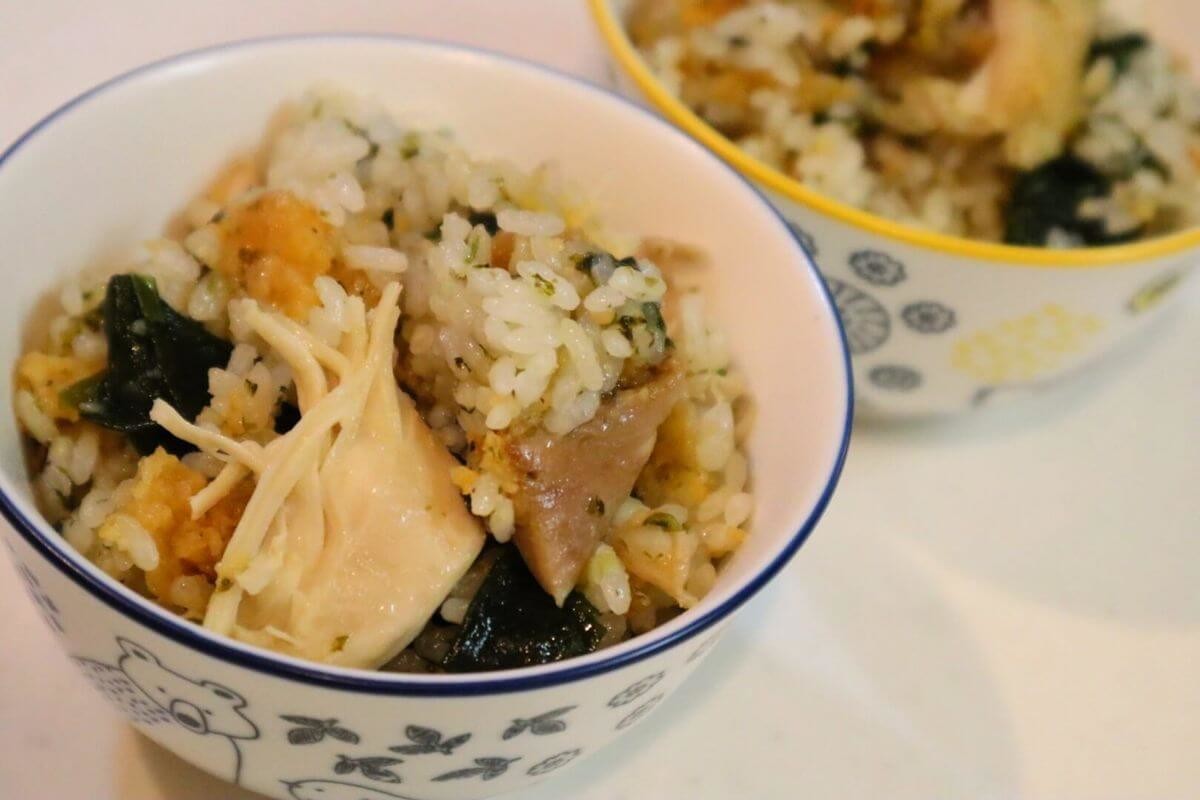 ファミチキの旨味とスープの味って、炊き込みご飯にめちゃくちゃ合うんですね~!