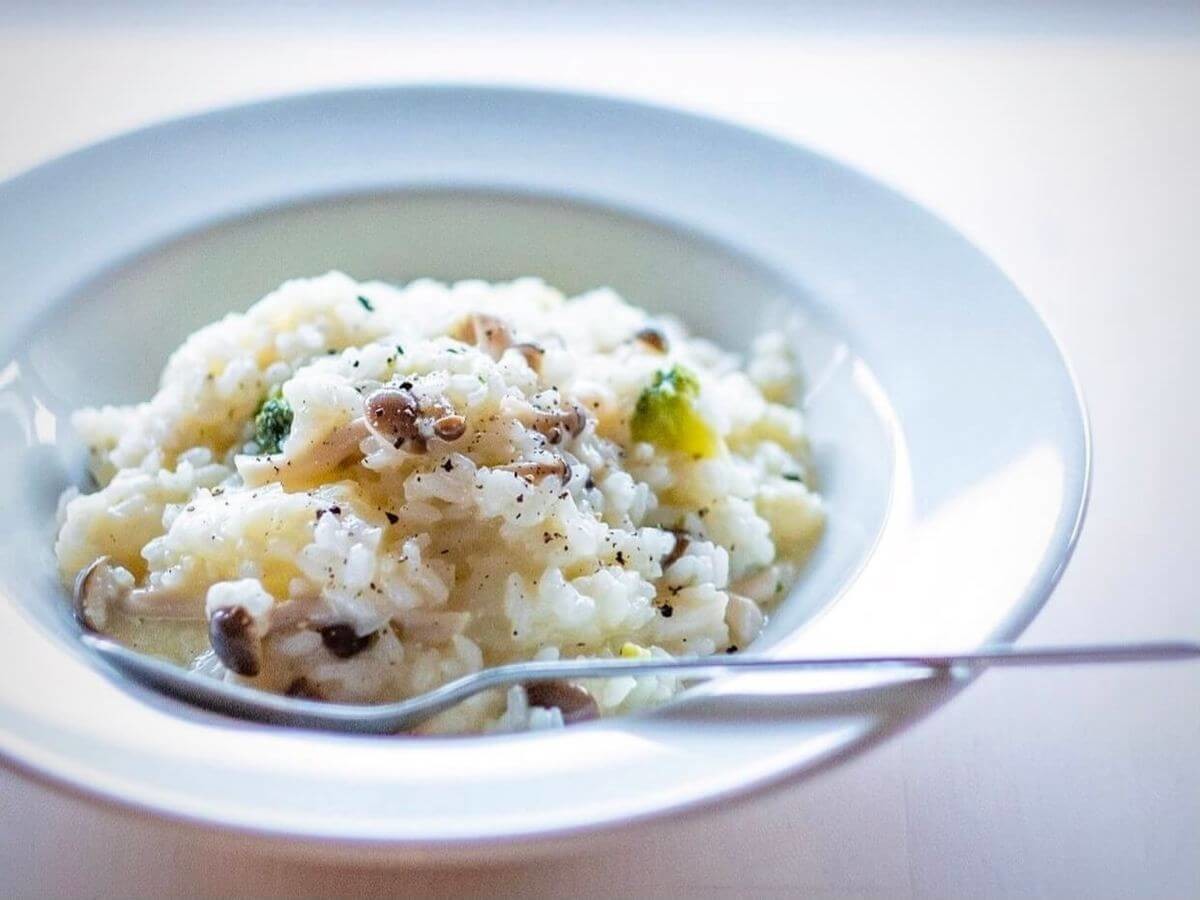 きのことブロッコリーのチーズリゾットを作った際、「VARDAGEN(ヴァルダーゲン)」に盛りつけたところ、食欲をそそる美しいひと品に仕上がりました。