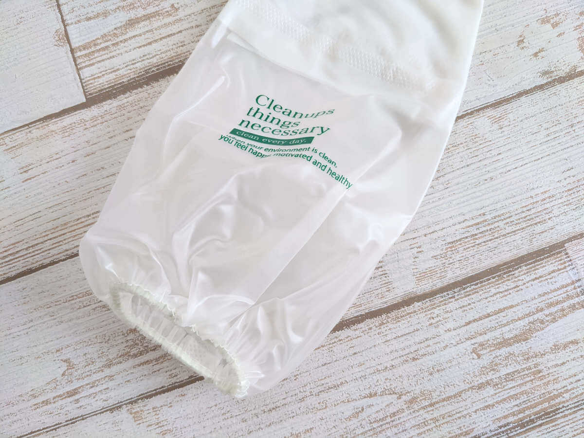 そんな悩みを解消してくれるのが、スリーコインズのずれないゴム手袋。 長さのあるゴム手袋は他にもありますが、こちらは水が入りにくいように工夫されています。