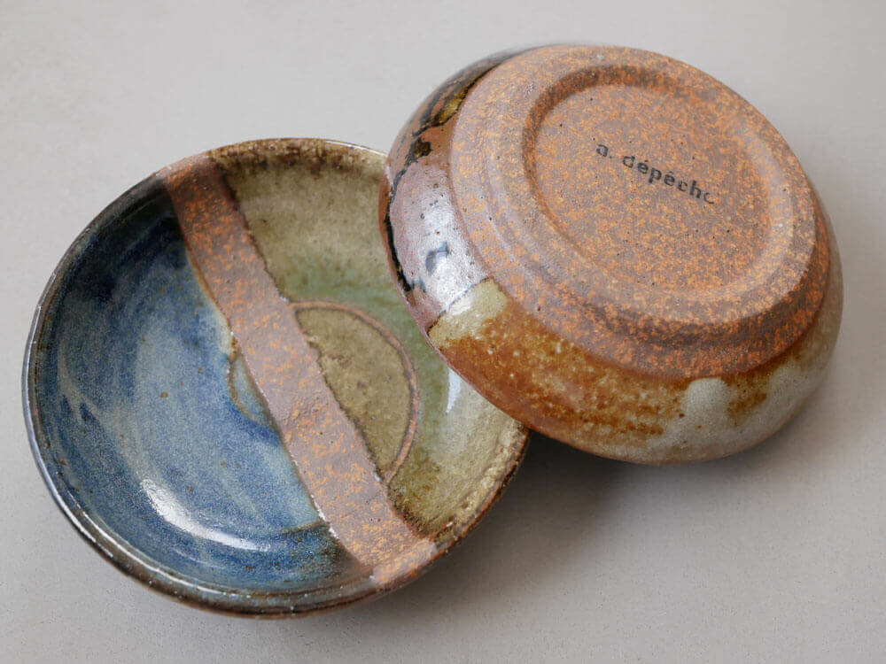 底の裏には、味わいのある焼印「a.depeche」。 和の素材感と英字の融合が現代風で、さりげなくもお洒落ですね。