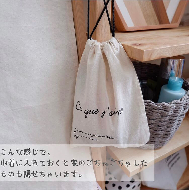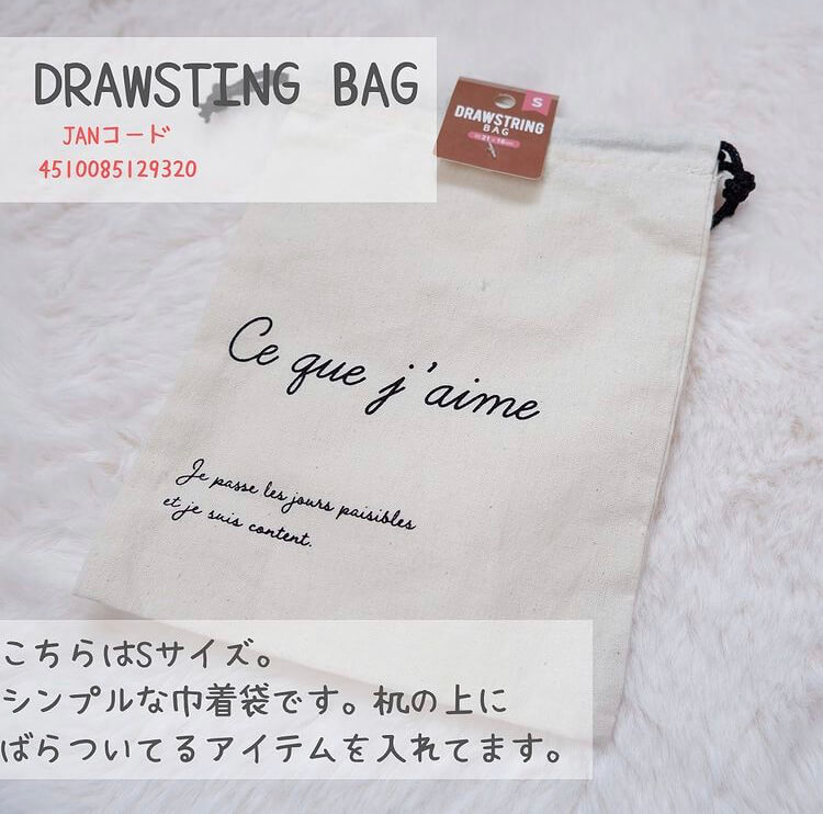 ごちゃごちゃしてしまう小物類を、お洒落に収納したい!という人にピッタリなのが、セリアで人気のシンプルな巾着袋。