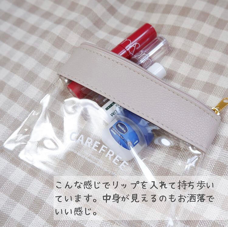 @goma goma_yuさんが購入したのは、シンプルなのに可愛いクリアポーチ。グロスやリップなど小物の持ち運びに便利です♡
