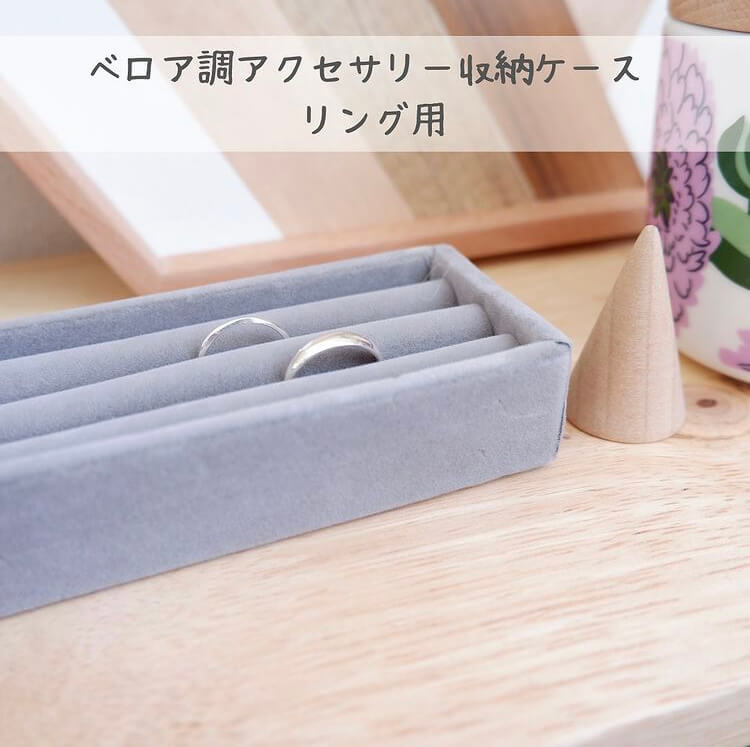 セリアには、こんな高見えなベロア調のアクセケースがあります!ちなみにこちらは、リング専用ケースです。