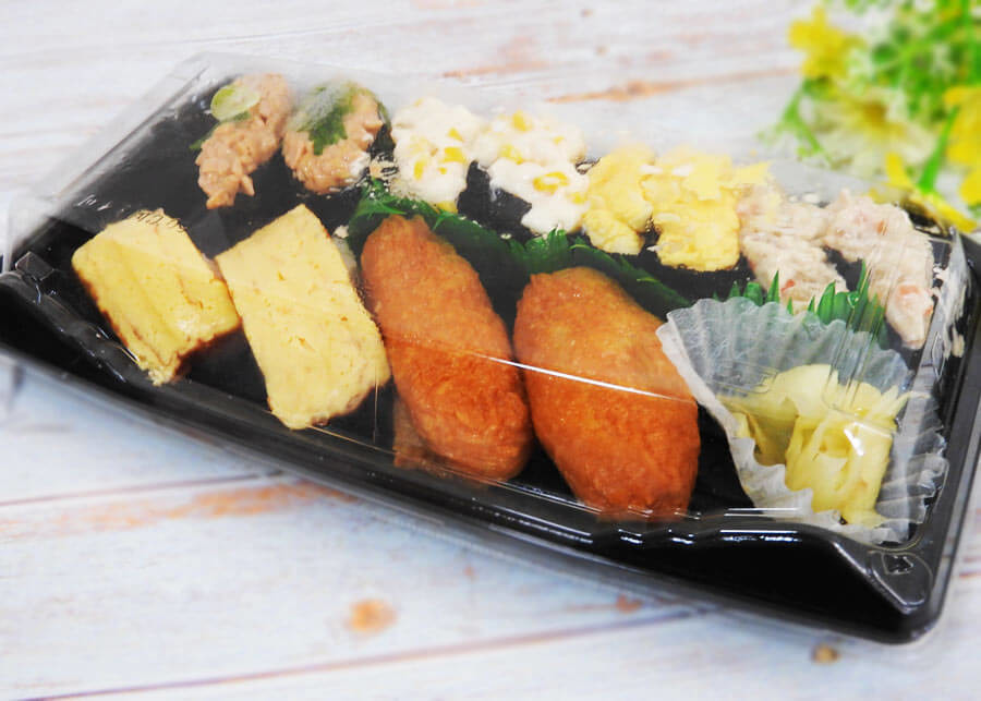 寿司はスーパーでよく見かけるような容器に入っていましたよ。飲食チェーン店のお持ち帰りを利用する時は、しばしば容器代が別途かかるケースがありますが、かっぱ寿司では容器代が無料です。