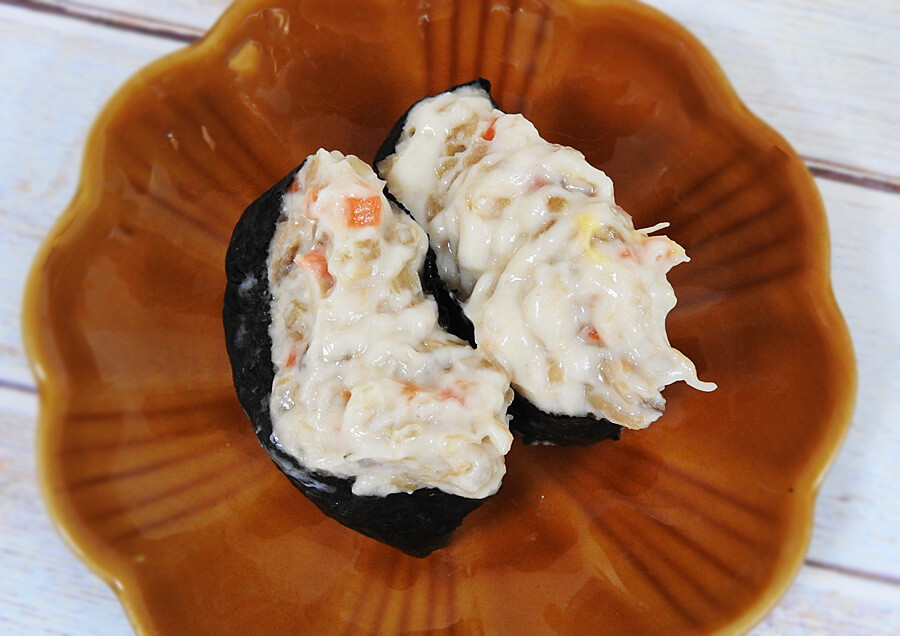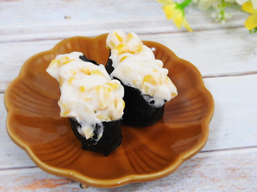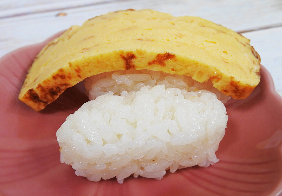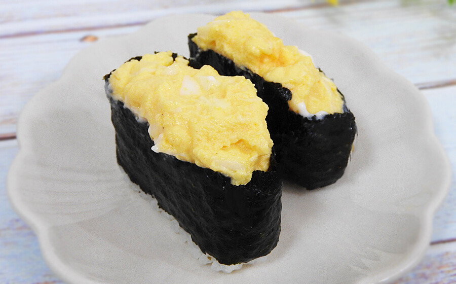 たまごサンドの中身が直接トッピングされたような軍艦です。一口食べてみると、たまごとマヨネーズの味が広がっていきます。
