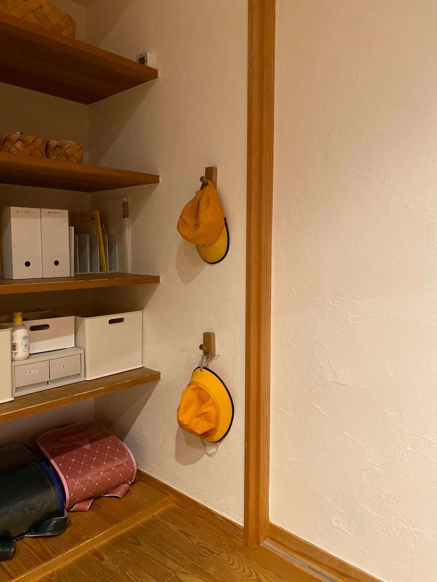 このシリーズには色んなところでお世話になっていて、子どもたちの学校の帽子も引っ掛けて浮かせています。