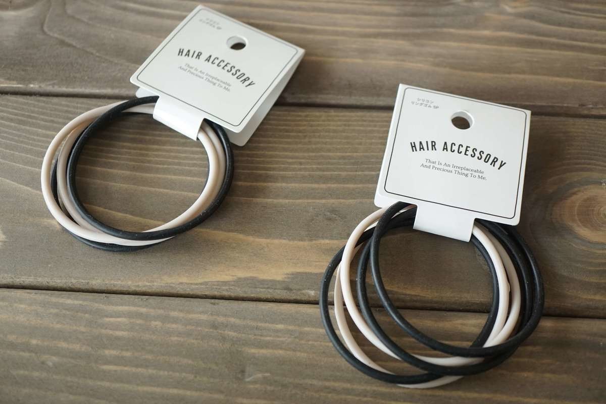 こちらは材質がシリコンのヘアゴムで、5個セットで110円です。