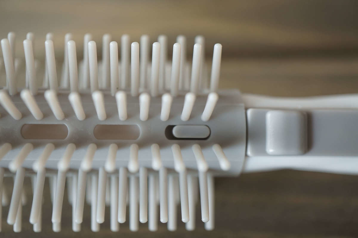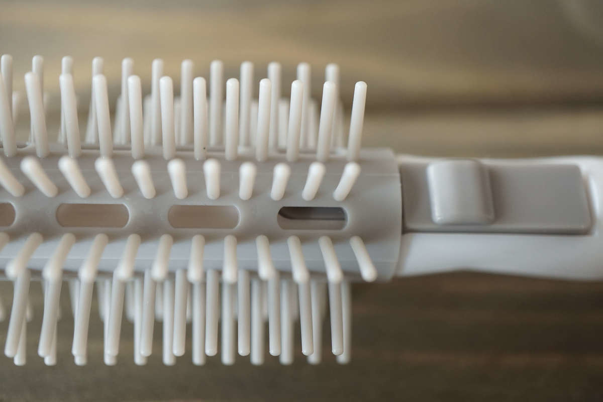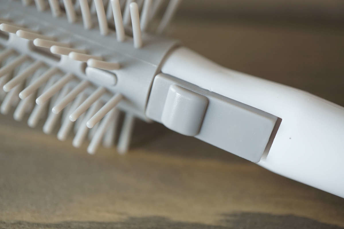 ボタンを押すと突起が外れ、ブラシが回ることで髪がスルッと外れます。