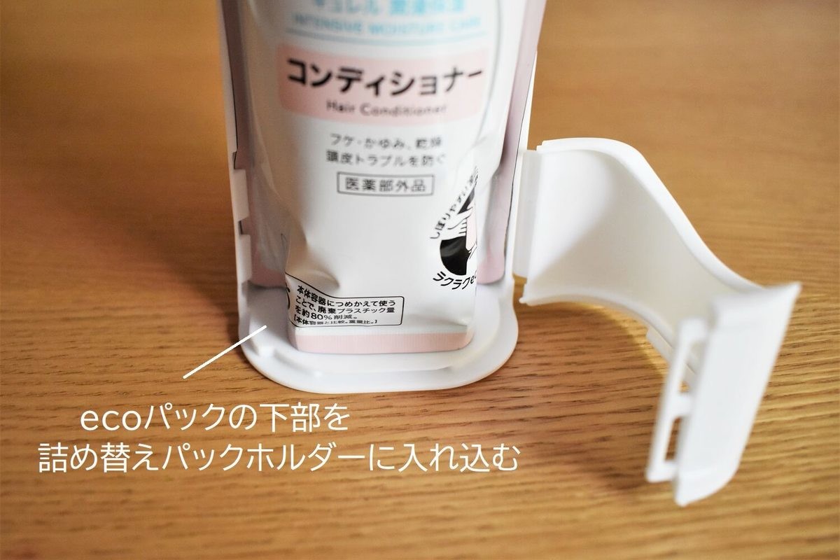 見落としがちで注意したいことはこの詰め替えパックホルダー、なんにでも使えるわけではないということ。実は「花王のエコパック専用」なのです。