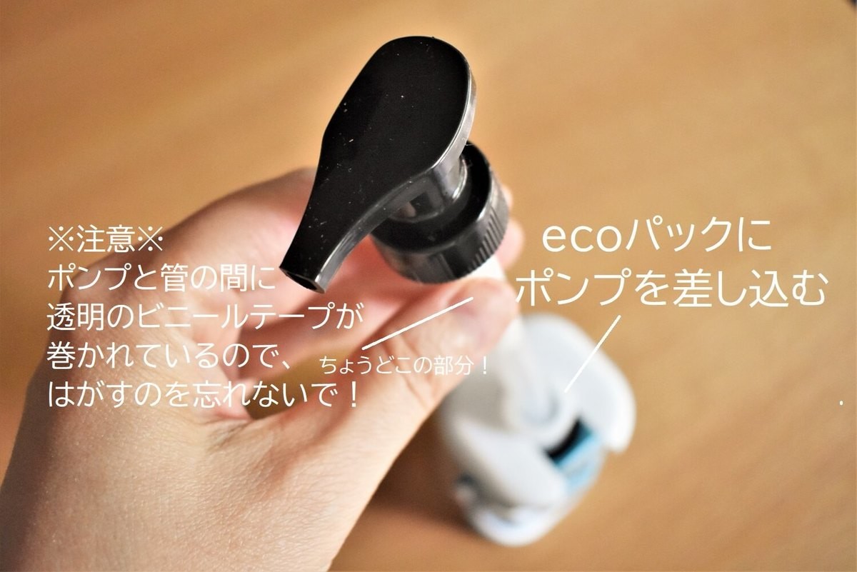 #3.エコパックのキャップをとり、ポンプを差し込む