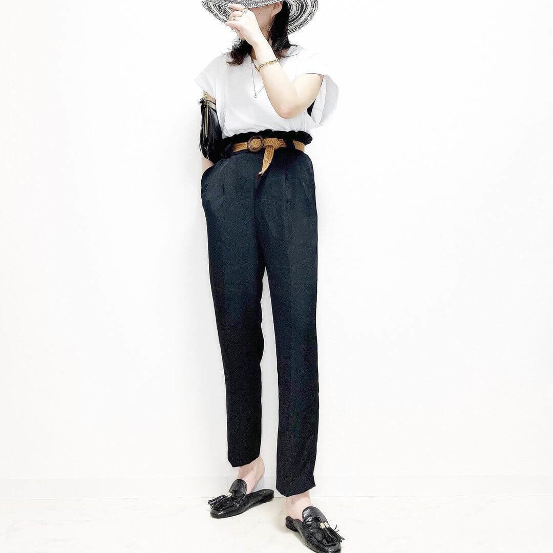 ZARAのストレートパンツとコーディネートした、大人シックなモノトーンスタイル。