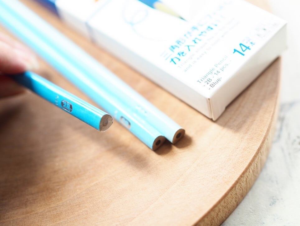 三角形は持ちやすく、机の上をコロコロ転がりにくいので勉強もはかどりますよ。