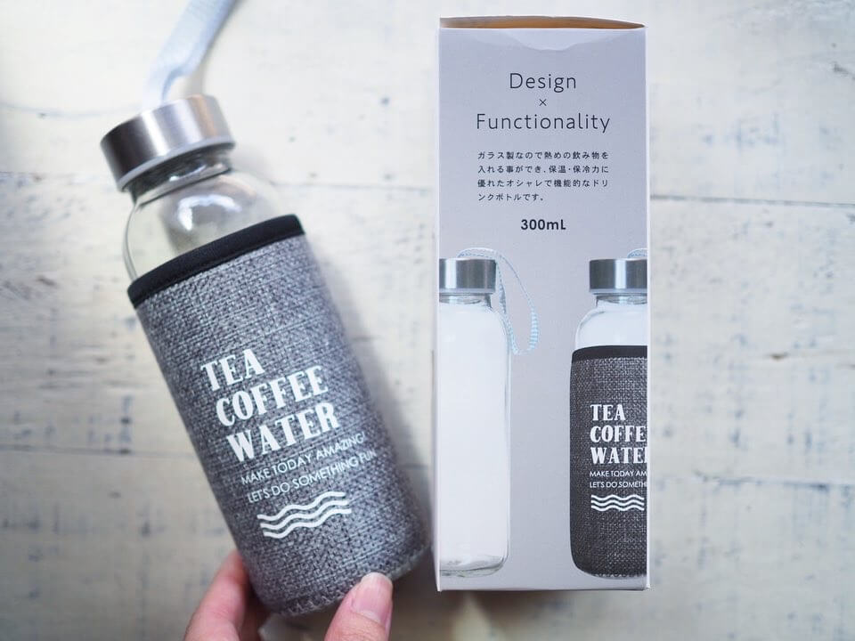 100均ドリンクボトルも定番商品になりましたが、こちらはなんと今までにない耐熱ガラス製で、熱い飲み物も入れることができます!