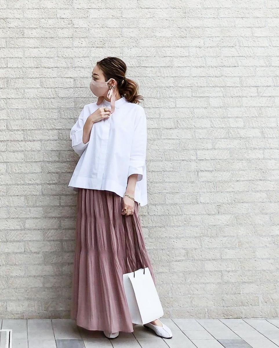 立体感のある美しいシルエットが特徴の1枚で完成されたシャツだからこそ、スキニー合わせは無難コーデになりがちです。 そこで今回は、王道のスキニーパンツやタイトスカート以外の、トレンド感を意識した着こなしをご紹介します。